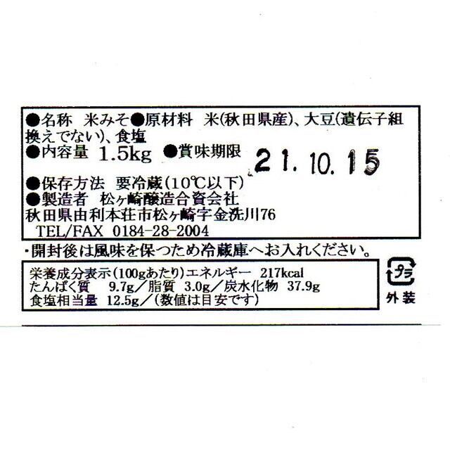 秋田の田舎みそ 1.5kg 【無添加・自然熟成】
